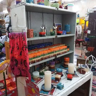 Odd little shop with a sign out front that says "Candles and salsa shop" but there weren't many candles and there was only one small table of salsa. Not that those were things I was interested in, but I'm all about honesty in labels.Inside, a varied collection of trinkets and tchochkies as well as a few clothing items. Prices ranged from moderate to a little high.Certainly worth a look though.