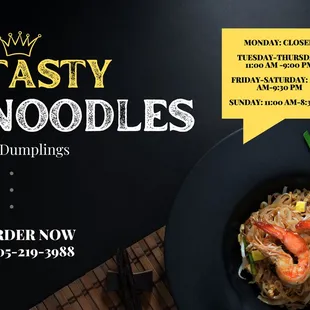 I tried Tasty Noodles and Dumplings and it was great! I highly recommend their bao and dumplings. It was refreshing to have fresh bao buns. Originally from the Bay Area, I miss getting dim sum and enjoying fresh dumplings. We tried the BBQ pork bao buns and the pork and scallion buns. Simply delicious! Served in a steamer basket, they were savory and sweet and delicious. I ordered shrimp fried noodles for my entree and my husband had the dry fried chicken. Both plates were tasty, but I will be honest - the noodles were delicious but had very little vegetables and a few small shrimp. It ended up tasting very dry. The same is the way for the dry fried chicken; no veggies excepted the Thai chilis. We did have to ask for chili oil. Not much selection of sauce at the table- no hoisin, chili oil, just soy sauce. I recommend this place highly for the bao buns and dumplings.