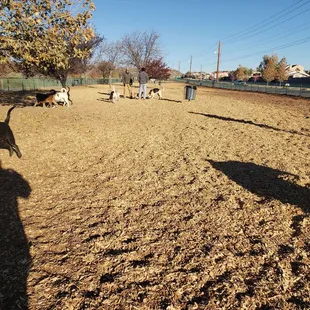 Nice spacious dog park! Could use some work in the poop clean up but over really great. There's a large dog and small dog section with plenty of balls around! They also have a water section with a kid pool. Nor for drinking than playing. My pup loved it!