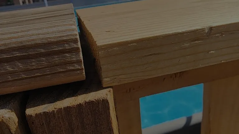 a wooden pergolated patio with a table and chairs