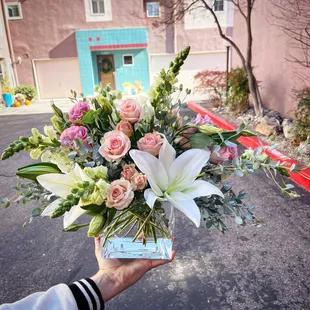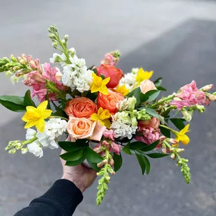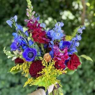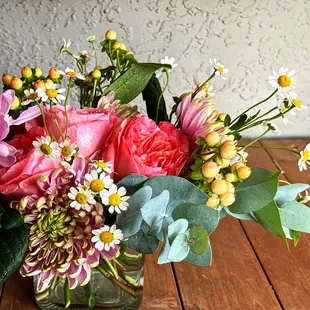 I called around a few flower shops and asked for wedding bouquet of wild flowers. spoke to Cory who did a absolutely beautiful group of wildflowers for my daughter. she loved them ! the flower crowns for the bride and 3 year old were adjustable !! thank you