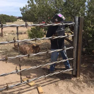 Jeremy welding the steel post to the base plate for this 50' structual beam