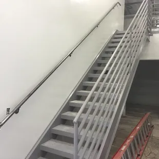 Powder coated railing to top off a spiral staircase! Simple but really nice design.