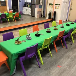 Part of the little gym. They have uneven bars, balance beams, a party room schedules, for parents and children