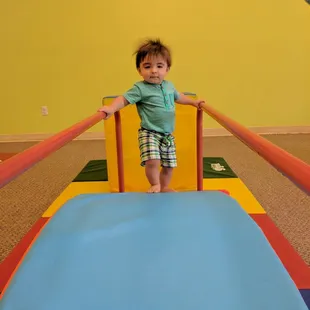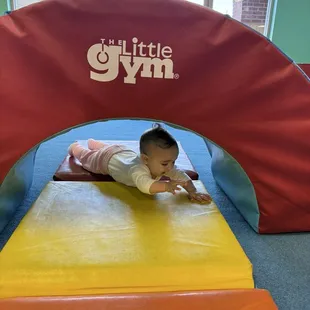 I went here with my sister and nephew just to see what it was about. It was really cool! It is set up to help babies, children and parents focus on child development and movement physically as they age through interaction with toys and parents. For example, helping smaller babies about six months working towards crawling toward toys, their arm strength, and army crawling. Or it appears in the older class (about a year old) they walk along a balance beam about a foot off the ground with assistance and work on an obstacle course with a parent, focusing on balance and coordination. It's really amazing what little things you learn on how to teach your child! Highly recommend!