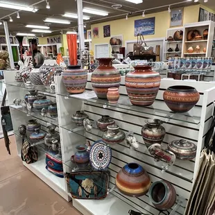 On rare occasions I stop in a store and say wow with the inventory - this place is an exception. There is some of the usual tourist stuff, but being off of the main travel routes the focus is much different. What made us stop was the Native American pottery and the glassware. While some pottery is mass produced and geared for the tourist trade there is a huge selection of one off, individualized pieces. Living here has made us discerning consumers of pottery. The other piece was the glassware. It comes from Makora Glass in Poland. The Shop at Old Town offers the largest selection in the US. It even comes with a satisfaction guarantee. If it doesn't fit your decor it be returned. The glassware is beautiful for see and I can imagine even nicer in the right decor. We have to find a place and color for ours. We were impressed will be back to add to our collection of pottery. If you get to Old Town adding this place to your list is a requirement.