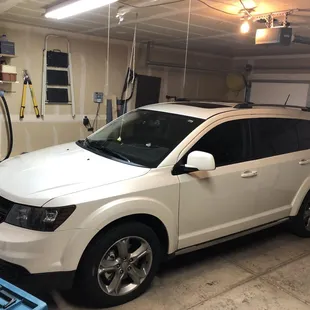 I and my family have had several cars tinted here over the years and the service is always awesome! We've never had any problems with the tint bubbling and they guarantee their work so if it did bubble they would fix it. I took my 2017 Nissan Rogue here and got the ceramic tint. Darker tint on the back windows and lighter on the front. I also got a strip across the windshield. The application process took only a few hours and then I was able to pick it up. After cautioning me to not roll the windows down for at least a week I was good to go. The tinting greatly improved the quality of my car. 1.5 years later it's still perfect. I couldn't be happier with my decision to get the windows tinted at Tint Masters!