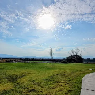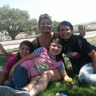 This is a very nice park with some big shade trees lots of room to play in the grass. The playground is too hot to play on..