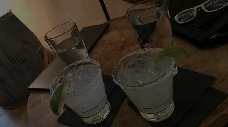 Happy hour marg and rustic charm.