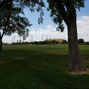 Great place to run your dogs in the open field! People are usually friendly and dogs well behaved. Be aware- there is HUMAN POOP everywhere, especially closest to the softball diamonds. Lots of homeless folks live in the park at night, and there's no budget for maintaining the park and they lock bathrooms unless there's a softball tournament. If your dog rolls in human poop like ours, be warned and keep on leash at all times. Also, watch where you step. People don't clean up after their dogs either.