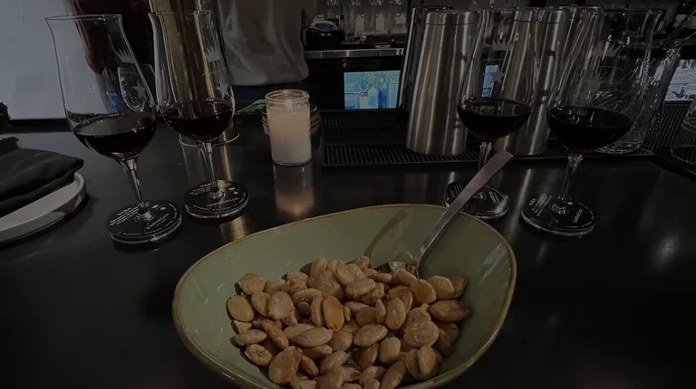 A pelting Saturday evening rain forced me into Vara Vinoteca, where I went to end the night in Santa Fe before scurrying back to my close-by hotel. Vara sells its own wines here, which its website says come from grapes grown in New Mexico and in Spain. So I tried the red wine flight, which goes Grenache, Carignane, Tempranillo, and then a better Grenache to finish. The first Grenache had no fruit and hardly any tannin, for a borderline harsh mouthfeel - I wouldn't even serve it if I were them. There was a bit more to the 2nd and 3rd selections, and fortunately the final Grenache was actually a wine with a bit of complexity. Not everything has to be a California wine. But what I can't understand are the marcona almonds I ordered, which were so sticky with dried honey that they were served with a spoon so as not to get on my hands. On top of that, they were stale. Can I trouble you for some freshness when I eat out? Why not just drizzle on the warm honey right before serving? I'm also concerned by the spirits selection where one name, Taylor Garrett, supplies more than half the menu. Surely you could add some variety here, for someone who knows what they're ordering?The people behind the bar look and talk like they're in their early 20's. Basically, I think Vara is at best a place to pregame at. Try something else first.