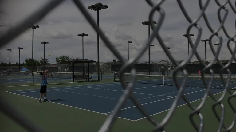Really wonderful sports park in the far northwest. Lovely green-grassy soccer fields and ample well-maintained courts for tennis tournaments. Tennis complex has bleachers with limited views that are shaded during the right time of day. Parking lot permits tailgate views of the matches too. There's also a toilet facility with two rooms each, but alas, pit toilets, not plumbed. And obviously no sinks for washing hands. At least there's something more than a port-o-potty. At least there's something at all!