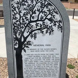 Beautiful and tasteful memorial park for the women who were murdered and buried on the Mesa. While the murders remain unsolved, we can honor the lives of women we lost. It's small and intimate. Very nice to walk or sit.