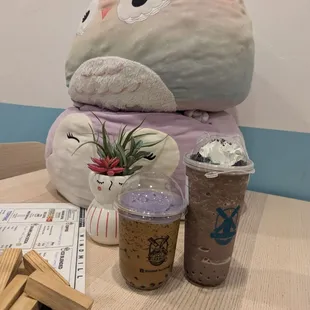 Came here on a whim because we were in the area, it was hot and we wanted something to drink. Boba was a treat for me. I'm always in the mood for boba. And coffee, I am always in the mood for coffee too. So when I can combine the two, I always pull the trigger. I went with the blended coffee with boba. It was a bit sweet for me, may go down a notch on my next visit on the sweetness, but otherwise, delightful. The cute bubble lid with ears was the best. We grabbed all our drinks and bounced, but the dining room looked nice and spacious. I do remember spotting a few extra large stuffed animals about. Squishmallow-esk, but the real deal squishmallows LOL.