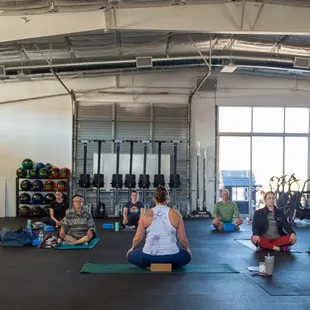 Awesome huge workout space! There are also ample bathrooms/showers and a full kitchen & seating area.