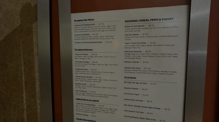 Solid hotel restaurant. Service was quick and efficient. Menu is as expected with expected variety and dishes.