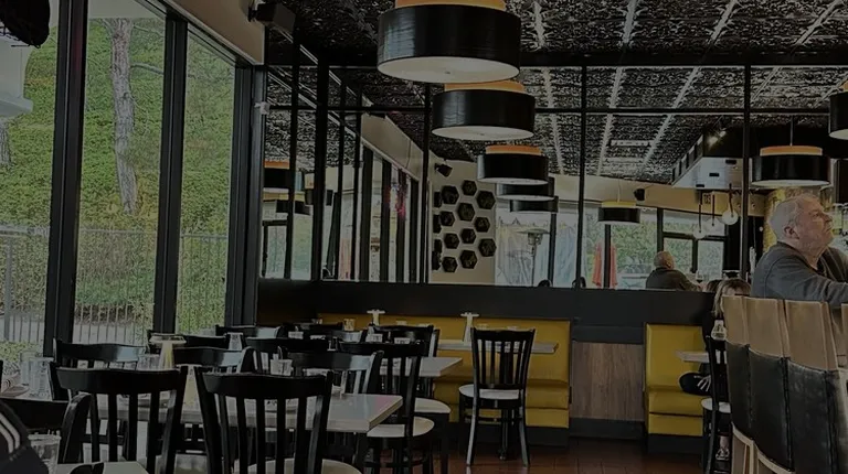 a view of a restaurant through a window