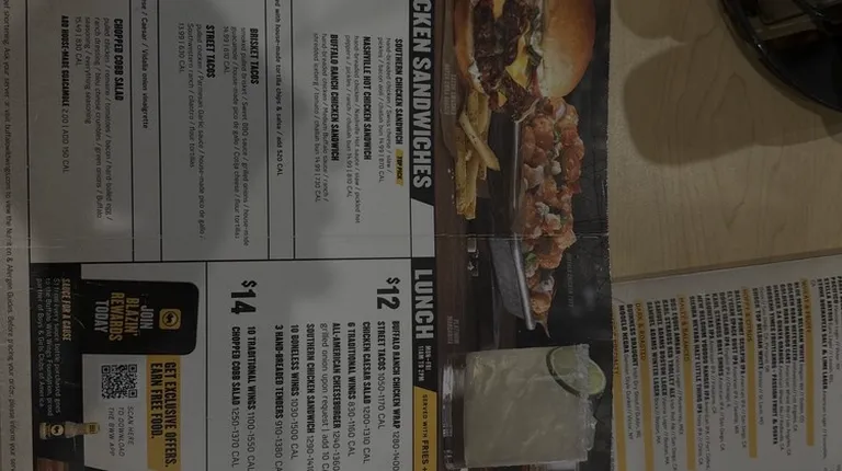 Food is average at best. We were given outdated happy hour menus. There was something called a chicken dawg or something with the word dawg in it. And we were so curious about it but were told it no longer is available. Cool, maybe tape over it or make a new menu so people don't ask about it.It wasn't busy. They played various sports channels, all of which were muted. It's a good place to drink and watch a game, but if you're going for just wings, I'd recommend going elsewhere.