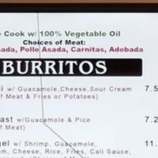Angel burrito 8.5/10: From the meat, to the shrimp, to the guac you can't go wrong with anything included in this burrito. The burrito is also the size of my forearm. If youre looking for a breakfast, lunch and dinner item. This one burrito fits all 3 categories as one will keep you full all day. I went with the asada today, but I typically like the adobado (pork) better due to more juices and flavors. The Cali sauce is a must, you can never have enough. If you're not looking for a burrito, their fish tacos are also gigantic full of flavor. Bang for your buck Forsure!