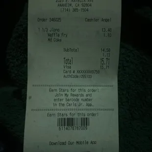 Carl's Jr is a casual fast food restaurant offering a wide range of burgers, chicken sandwiches, and fried foods. This Carl's Jr location is on East Katella Avenue, located right across from Angels Stadium. It's also next to other businesses such as Panda Express and Panera Bread. There is spacious amount of parking available.My daughter and I were staying at TownePlace Suites by Marriott. After our visit at Disneyland, we stopped by Carl's Jr for dinner one of the evenings. My daughter picked their kid's meal which include 6 chicken nuggets (stars), French fries, drink, and a toy. I had ordered their chicken sandwich (Bacon, Provolone) with French fries.Service was great! The team member was training a new employee at the register. We weren't in a rush and didn't mind taking our time with the order. We took the meal to go.My daughter enjoyed the chicken stars. The French fries were salted and fried to perfection. The French fries weren't soggy. The chicken sandwich was delicious. The provolone and bacon enhanced the chicken sandwich's flavor. It was quite filling! The Carl's Jr looked like a new location. The restaurant was clean and all of the inventory was well-stocked!