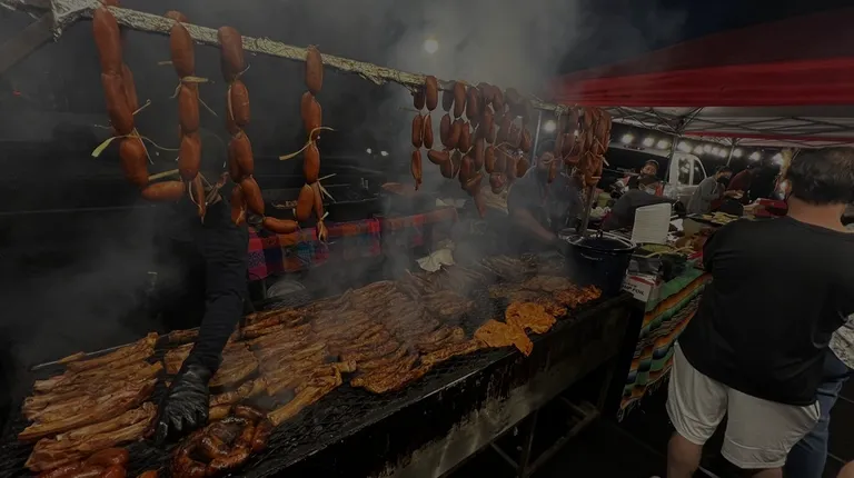 Chorizo and ribs cooking