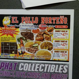 Menu from El Pollo Norteño Anaheim. Current prices as of 9/16/2021.