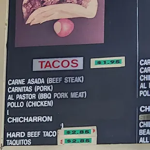 menu, tacos