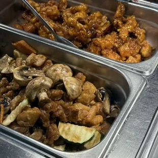 a variety of food items in trays