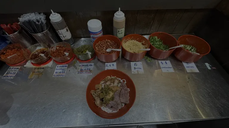 Great food. After you order the noodles, they serve the noodles at the condiment and toppings station. You can add your own amount of chili sauces to adjust to your own palette. They also have minced raw garlic, green onion, roasted peanuts and cilantro that you can top off your noodles with.