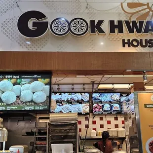 After getting some mandu and taiyaki from Deli Mandoo, I walked over to Gook Hwa House as this place was recommended by the lady from Tour Les Jours. She said they have very good foods so here I am. I take recommendations very seriously especially when it comes to food LOL.They were very busy at the time. There was only two people working. The lady behind the cashier was very pleasant and hardworking. I ordered 1 10 piece Korean fried chicken with soy garlic sauce, 1 order of 10 deep fried leek dumpling, 1 order of 10 xia long bao, and 1 order of 6 steamed red bean bun. Portions were huge especially the big red bean buns. I have never seen so much red bean filling. Everything was so delicious. My favorite was the deep fried leek dumpling... again tons of leek filling. Yummy!!!I will be coming back here for more deliciousness. I want to try their other fried and steamed offerings. I highly recommend Gook Hwa House aka Cr8zy Bao located in Super H Mart food court in Diamond Bar. Indoor seating is available. Restrooms are near the food court.