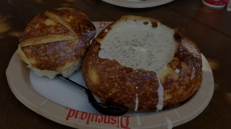 I got one thing here, and it was amazing--the perfect treat for chocolate lovers! Among Disneyland's many sweets, this warm, thick, gooey chocolate chip cookie WINS. It's like a reward after 20,000 steps in the park! Paired with a school carton of milk, it's a chocolate chip lover's dream.While waiting, we saw plenty of people leaving with fresh bread bowls--soft, golden, and definitely on my list for next time!
