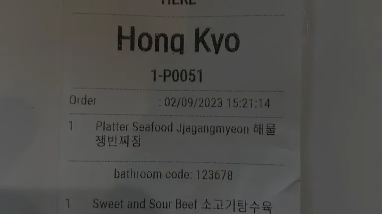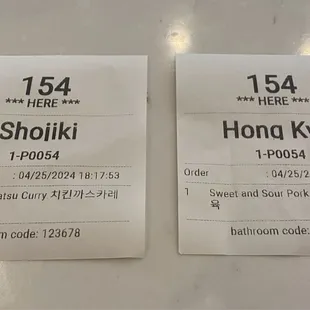a receipt for a food service