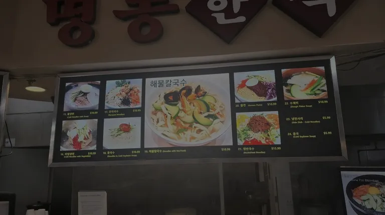 I stopped by this place to pick up some noodle soup for my girls. I asked the lady to omit the mussels and give one additional shrimp if possible. I confirmed it with her two times but she got it backwards. All mussels and no shrimp. It's a little inevitable when the staff mostly speak Korean. The soup and noodles were good and I liked the side beans and kimchi. Reasonably priced.