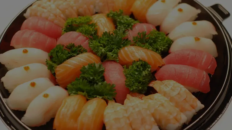 a close up of a plate of sushi