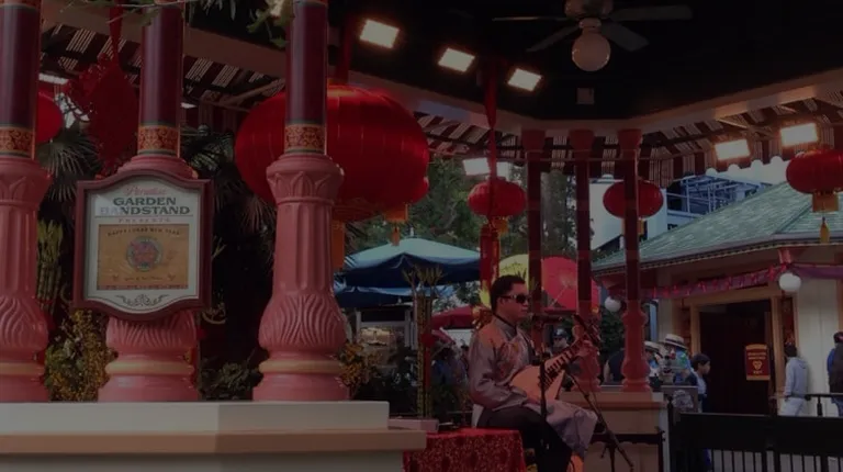 This a shady place with a bandstand and tables to eat food from the adjacent restaurants in the Paradise Pier area of Disney's California Adventure. The architecture is beautiful and the live music is always top notch. (My favorite are the Mariachi Divas ). This is in a quiet section of the park and worth checking out when it's time to eat and relax.