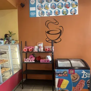 The doughnuts are small compared to other places for the same price. Which may not be a terrible thing if you are looking for something that's smaller in portion and possible lower sugar content. The store also does the cell phone thingy so it's a little confusing, but I guess I understand the need to survive with harsh economics nowadays. Might return when I am in the neighborhood and the craving hits!