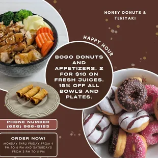 Teriyaki Chicken! If you only get one item here, get the teriyaki chicken (you're welcome).I stopped by on a Friday during lunch rush and there was a handful of people inside. The service was friendly and I was told it's under new management - so be a little patient with them as they get their operations down. I ordered the Beet, Carrot, and Orange juice, donut holes, chicken and steak plate, and donut holes. I don't normally order healthy juices with carrots in them but this was recommended to me as it's their most popular juice drink. It was good if you're looking to stay healthy - there are not any additional sugar added. Donut holes were standard, nothing crazy about them but I love a good solid donut hole. Chicken and Steak Plate - I was so hungry I gobbled this up quickly. The chicken is juicy and had good flavoring. No complaints about the steak but the chicken definitely stole the show. Overall, this was good and I would come back and order it again since it seems healthy as it's your choice of carbs (or you can get steamed veggies) with a protein. The portion sizes are good, you definitely get more bang for your buck here versus skimpy Panda Express.Thai Tea with Boba - they use tea leaves for their thai tea and not powder. My only complaint is the tapioca balls are harder than I prefer it to be. If they were cooked a little longer/softer it would be perfect.Overall, I'll be back!
