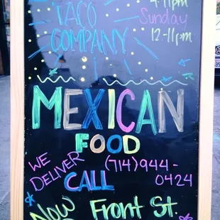 a menu for the taco company