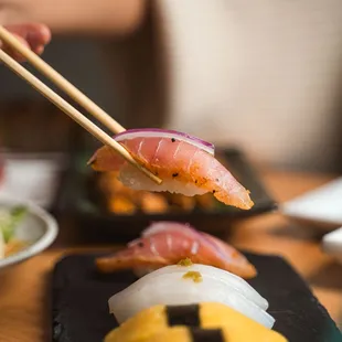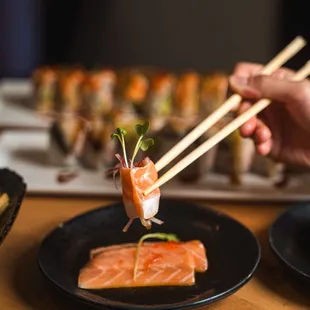 The food overall here is great, but with a few hiccups. One of the hiccups was that the nigiri's rice. Every time we picked one up, the rice fell apart in half. We got salmon skin salad also, and to me, it could be a lot better with more dressing in my opinion. Another was that I usually find more comfort food menu like miso soups in the menu, but this place didn't have it on their menu. I think if they added more comfort food also, then it would be another solid go for me. All the other sushi's we ordered were good! I really loved the crispy rice tuna and takoyaki the most! Takoyaki was crispy on the outside and soft in the inside. I recommend getting them if you're a Takoyaki lover. The salmon carpaccio was the best, it was packing with flavor! I recommend doing AYCE for your full experience so you can try many different things! Service here was very friendly and helps you with everything if you need help. They always check up on you if you're doing good every time!Ambiance looks like a very expensive place to be in but it's actually an affordable. I love the modern chairs and tables.This place just opened up, so come on down and check this place out!