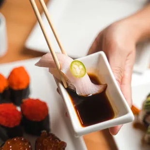 Went here with a small group of friends (one person in our group does not eat raw), and this place has a good mix of raw and fried/cooked items. The fish quality here is phenomenal! I really enjoyed the sushi here and all the cuts of fish were delicious and beautiful. There was a perfect amount of rice for each piece of sushi which was very nice; some places have too much rice but here at Tomikawa, the rice just perfectly complements the big slices of fish. As for the cooked items, I highly recommend the katsu stuffed with cheese. It has a nice crunch to it and filled with gooey delicious cheese. It comes with bulldog fruit sauce that went perfectly with the saltiness of the katsu. Robin was our server and he was very attentive and sweet. All the other servers who came by our table to drop off and pick up dishes were very mindful and courteous. Great atmosphere, extremely clean restaurant, and amazing staff. I had a really wonderful experience, recommend!
