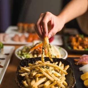 Last night, I was really craving sushi and decided to explore the 626 area. I came across this spot and thought I'd give it a try. I opted for the AYCE option, and it was absolutely worth it! Every piece of fish was incredibly fresh and delicious. My personal favorites were the salmon carpaccio and the seared garlic tuna--both were packed with flavor and perfectly marinated. The seaweed salad was so fresh that I ended up ordering two plates! Surprisingly, the furikake French fries were a standout--they were unexpectedly delicious with the seasoning. The service was fantastic, with the staff checking in frequently to make sure we had everything we needed. The atmosphere was great, whether you're on a date or with a large group. This modern sushi spot in Pasadena is truly a hidden gem! I'll definitely be coming back and recommending it to all my friends!