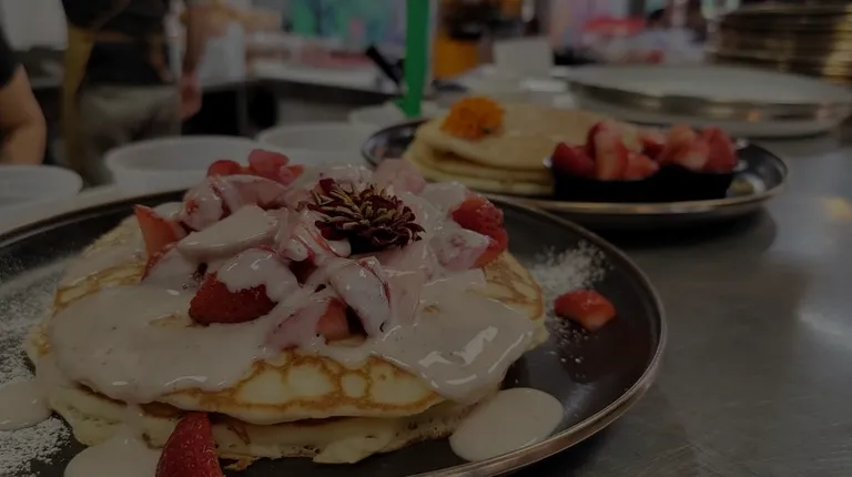Fantastic brunch spot in Baldwin ParkEasy parking in large mall They have a large painted cow outside, making it hard to miss, with plenty of people getting their selfies in.Staff were quick and friendly.The standout was their Fresa con crema pancakes with homemade marscapone cheese and fluffy pancakes- something alone worth coming out of the way to try here. We also enjoyed their pork belly Benedict which was solid.I also tried their Birri omelette which was okay. The side of potatoes was stellar though, which helped make up for it. Their cafe de olla was good but not a standout. I think I would get their scrambles instead next time. Overall a great spot to try for brunch.