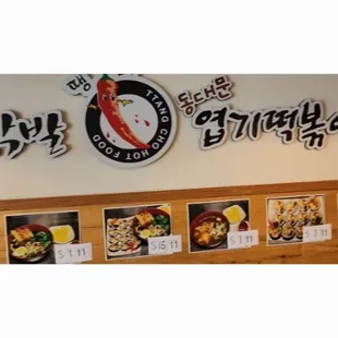Chicken, rice cake, potato, carrot, green onion, red pepper flakes, corn syrup. Serves with 1 bowl of rice and yellow radish