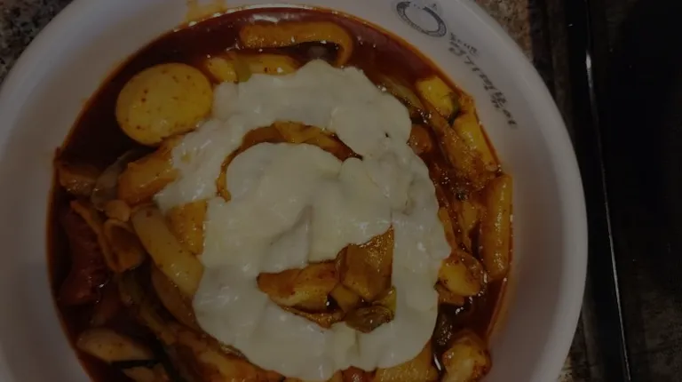 More fish cake, rice cake, sausages, cabbage, green onion, mozzarella cheese, red pepper flakes, corn syrup.