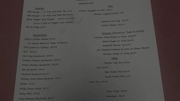 We like Abby's Place. We grab a burger and some fries and enjoy it a lot. It's very small inside but clean and friendly! We also call ahead and drive thru. It's not a huge menu, but the food is good!