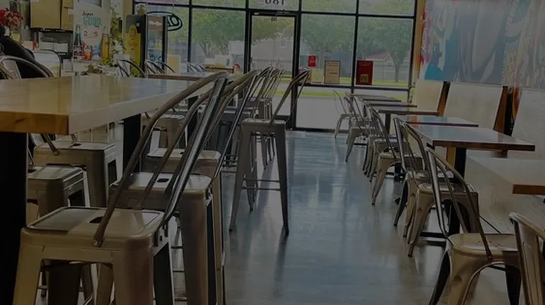 a restaurant with a menu on the wall