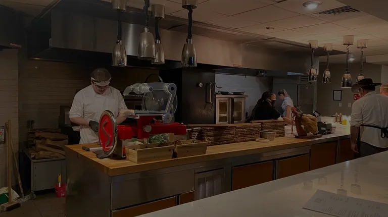 Open kitchen as viewed from the bar