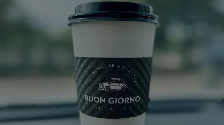 a hand holding a coffee cup