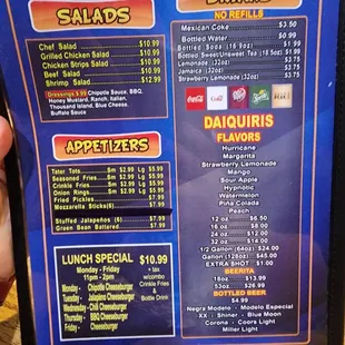 Chicken Wings was not seasoned. The daiquiri water down. The restaurant was totally empty, but I'm not sure if people really want to eat here.The prices are Crazy for the quality of food!***You Staff didn't ask how was the food*****