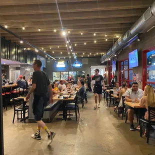 Most likely a 3.5 if I could add half a star. We made a reservation online. When we got there, we were a bit early & the hostess let us know that we were early. I mean, it was probably ten minutes early & we weren't expecting to be seated right away but she was kind of matter of fact. It was full, but wasn't crazy busy. There was on occasion two girls at the hostess stand, then we noticed that others who were walking in without reservations were getting seated before us by both the hostess that checked us in & the other staff member that was helping her.The atmosphere is pretty cool, casual & a good place for everyone. They are able to host large parties which is a plus for large parties, the table space itself is pretty spacious without it being cramped. It can get loud in there but merely an observation, not a complaint, just FYI if you're looking for a quiet place. The weather was not so great but they do have some wonderful outdoor seating when the weather is more accommodating!Food & drinks, we're okay. All of us had pasta dishes, I had the carbonara & it was pretty salty. I added on a meatball, that was delicious, for me it was the best part of my dish. My friend had the chicken parm (I think that's what it was), she said it was okay. Another friend had the brisket lasagna, that was a win. The drinks weren't bad, you couldn't really taste the alcohol... maybe they didn't use much but the fruity flavors of each drink was prominent & that was a plus. Fair price for the food, maybe a bit high for the drinks. Also, the food portions are big, you could make two meals out of one.Kyli was our waitress, she was EXCELLENT. Very kind, often checked in with us, & had a great personality. We had drink & food questions as we were decided what to order, she was helpful with recommendations. Just super knowledgeable.I didn't hate the place, but I didn't love it. I will probably go back & try the pizza. Lots of variety with a good selection of white sauce pizza options.